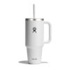 The insulated Hydro Flask 32 oz Travel Tumbler cup is here to hydrate more and refill less. The insulation keeps drinks cold for hours, and the durable handle makes it easy to take along anywhere. The 32 oz size stainless steel tumbler bottle can go anywhere, even fitting most cupholders. Cold stays cold, and the flexible straw is easy to sip any which way.