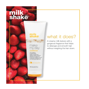 Transform your hair care routine with Make My Day Conditioner – a delightful blend of sweet vanilla scent, milk proteins, and fruit extracts.