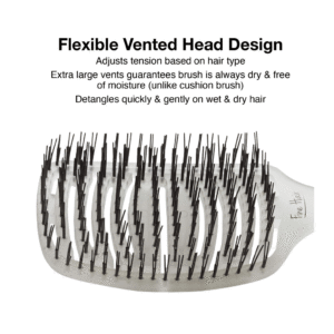 Scalp hugging vented shape for massaging while de tangling. Flexible Vented Design Adjusts Tension for fine hair